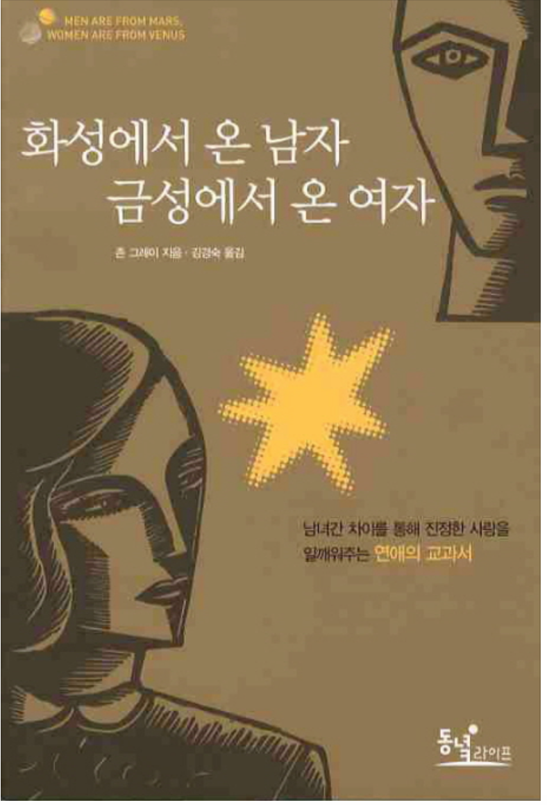 유명 베스트셀러인 < 화성에서 온 남자, 금성에서 온 여자 > 는 "본래 남자는 화성인이고 여자는 금성인이기 때문에 둘 사이의 언어와 사고 방식은 다를 수밖에 없다"는 단순하고 명쾌한 비유를 바탕으로 한 책인데요,